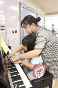 昼食を食べ終えたら、ツイスターやボールすくい、くじ引き、チェキ撮影、わなげ、ピアノ教室、スノードームづくり、スライムづくりなど、さまざまな遊びに挑戦!初登場のスノードームづくりやピアノ教室が人気を集めました。