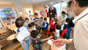 順番を守ることが難しい小さなお子様もいたのですが、お兄ちゃんやお姉ちゃんがやさしく見守りながらリードする姿も見られました。小さなお子様も、きちんと説明すると、途中から順番を守ることができるようになり、ルールを守ることの大切さを学ぶ機会にもなったと思います。