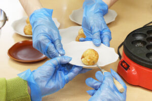 まん丸のたこ焼きは、管理栄養士が事前に食材の準備と下ごしらえをおこない、
